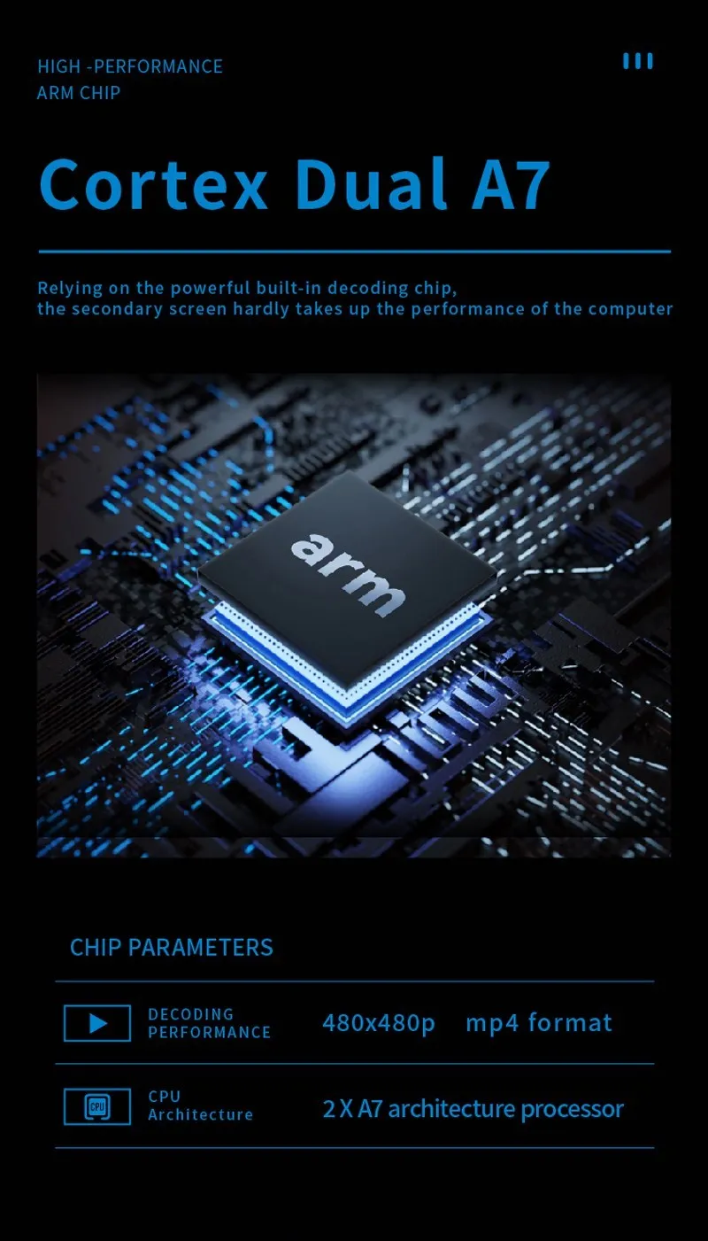 El diseño elegante y compacto de nuestra pantalla secundaria destaca en cualquier entorno, proporcionando una forma práctica de ampliar su área de trabajo sin comprometer la calidad de la imagen. Con una resolución de 480x480 píxeles y tecnología IPS, cada detalle se reproduce con precisión y colores vibrantes, garantizando una experiencia visual excepcional en cada uso.